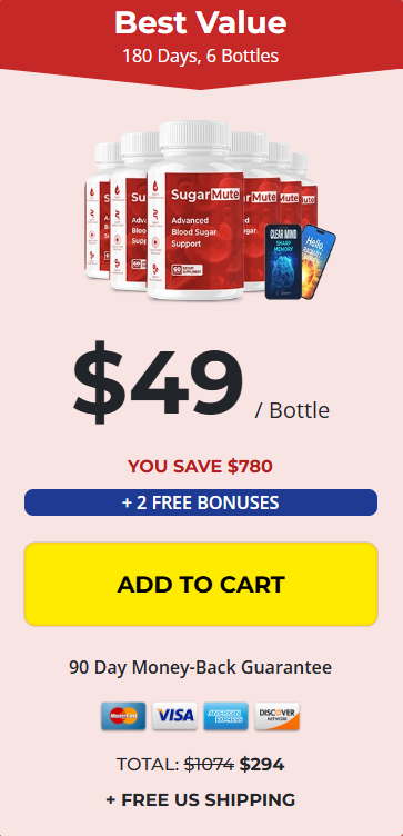 At this moment you can order SugarMute supplement for 73% OFF + FREE Shipping. This is a Limited-Time Offer and it won’t be available for long.